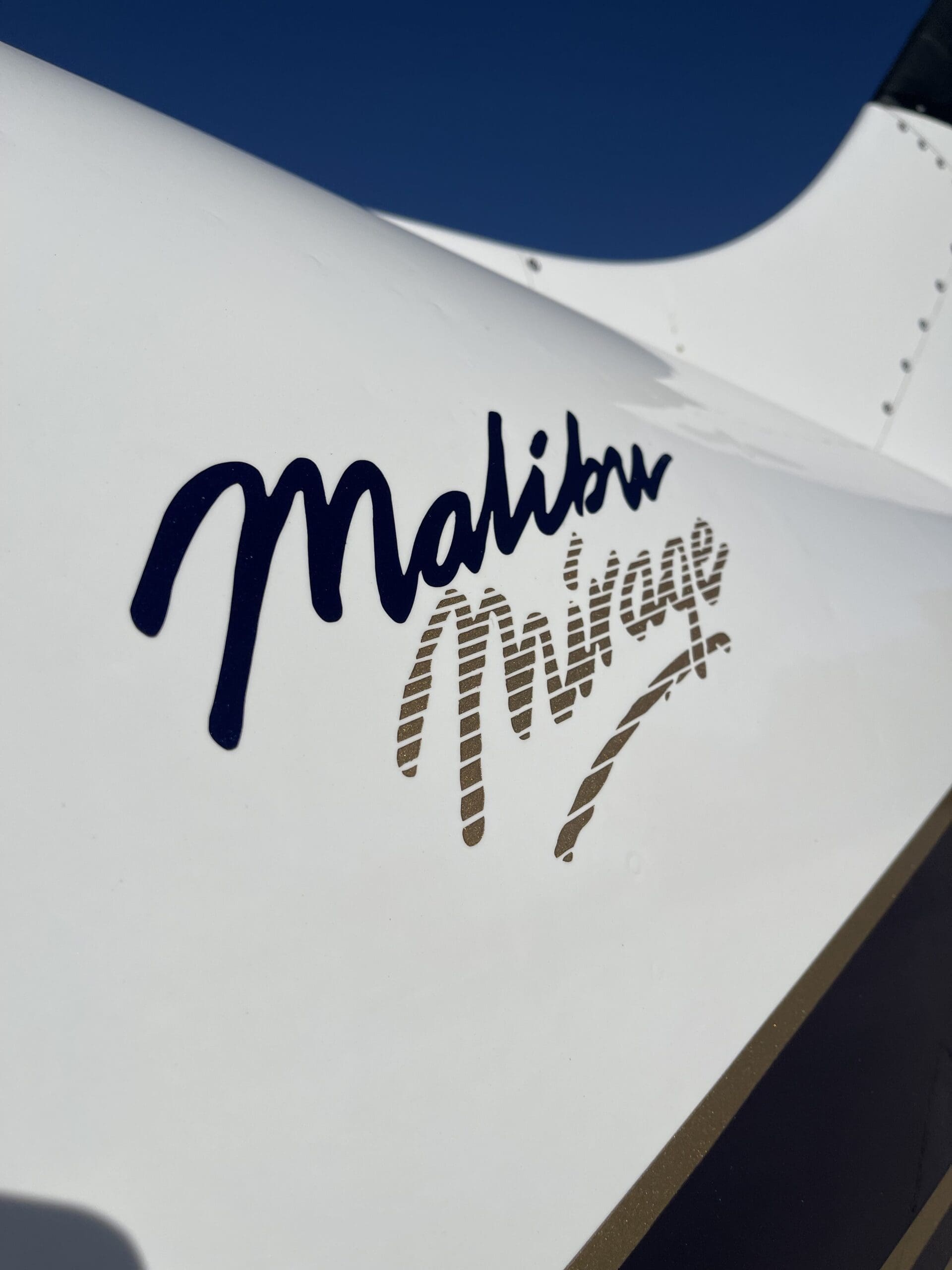 EXTERIOR: Matterhorn White Top with Blue Base and Gold Accents.